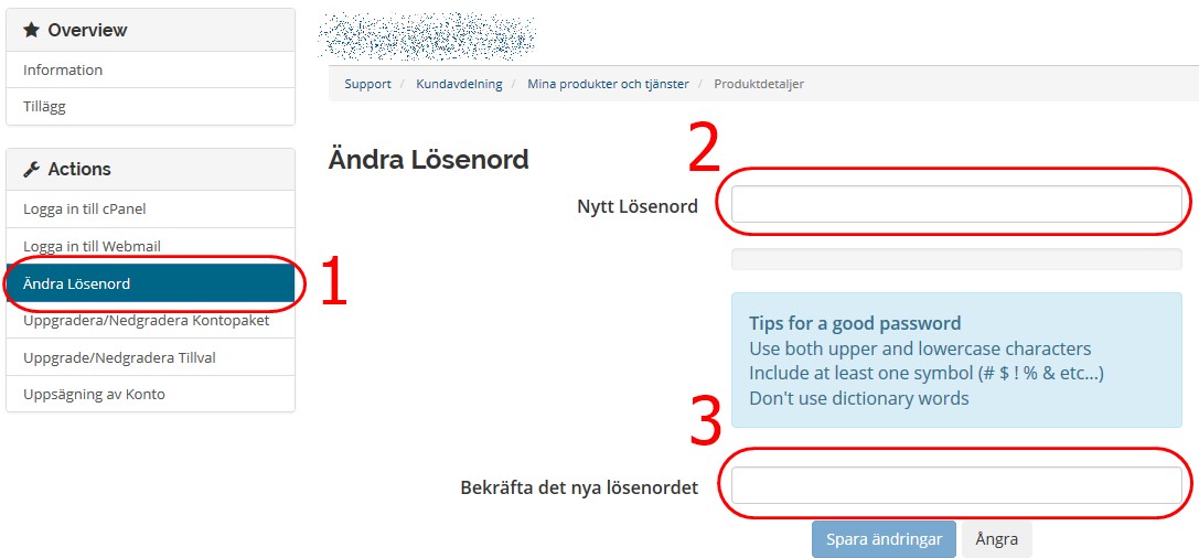 Klicka på "Ändra lösenord" till väster skriv sedan in ditt nya lösenord och upprepa det.